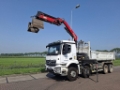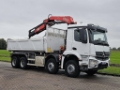 Aantal Assen: 4, Configuratie: 8x4, Eigen gewicht: 17469 kg, Totaalgewicht: 32000 kg, Diesel inhoud totaal: 220 liter, Aanhangwagen kopp., Dikte koppelingspen: Special, Aantal sperren: 2, Vering type: bladvering, Soort cabine: Korte cabine, Cruise control, Tachograaf, Digitale tachograaf, Airconditioning, Elektrische ramen, Elektrische spiegels, Radio/cassette, GPS navigatie, Kleur: Wit, Verwarmde spiegels, Achteruitrij camera, Soort lampen: Halogeen, Snelheidsbegrenzing, Stoelverwarming, Bluetooth, Zwaailichten, Motorvermogen: 315 Kw (422 Hp), Brandstof: diesel, Euro: 6, Soort versnellingsbak: Telligent, Merk versnellingsbak: Mercedes Benz, Snelheidsbegrenzing, Versnellingen: 12, Stuurbekrachtiging, ABS (Anti Blokkeer Systeem), ASR (Anti Slip Regeling), PTO, PTO soort: 1, Start accu, Aantal zijden: 3 zijdig kippend, Pomp, Centrale vergrendeling, Stoelopstelling: 1+1, Stoelbekleding: stof, Stoel verstelling: Handmatig, Kraan, Kraan merk: Fassi F175A.O.23 E-ACTIVE, Bouwjaar kraan: 2018, Capaciteit kraan: 17000, Max. belasting: 1415 kg at 10,10m, Aantal steunpoten: 2, CE goedgekeurd, Positie bediening: zijbediening links, Afstandsbediening, Positie kraan: achter de cabine, Hydr. uitschuifbaar: 3 keer, Extra hydr. Aansl.: 2, Rotator, Lasthaak, Grijper, FASSI F175A023,remote,2 side tipper