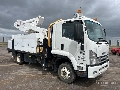 6HK1 6 Cylinder Diesel 235 hp Engine, 311 Engine hrs, Exhaust Brake, Automatic Transmission, 235/75R17.5, Spring Suspension, 4100 mm Wheelbase, PTO, 180 kg Capacity, Center Mounted, Insulated Articulating-Telescopic Boom, Utility Body, Straight Down Outriggers, Rear Outriggers, Cordless Remote Control, 4900 mm x 2500 mm Bed, Ball Hitch, GVM 11 t