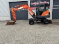 Doosan DX55WK Mobile excavator. Year : 2015 Hourmeter reading: 5.605, Weight: 5.550 Kg. Equipped with: Airco, Quick coupler, 2 Buckets, Working lights, CE Certificate, Yanmar engine, Monoboom, aux. hydraulic
