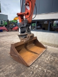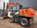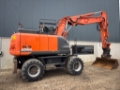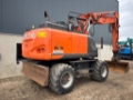 This Hitachi ZX170W-6 is equipped with a 4 cilinder water cooled turbo charged Isuzu 4HKX1 (128kW) diesel engine with just 7723 working hours on the service meter. VA boom, all hydraulic functions possible, hydraulic tilting quick hitch, grading bucket, additional work lights, wide single tires with good profile left, dozer blade, central lubrication, books, rear view camera, airco, radio etc.