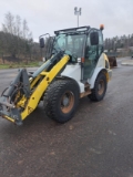 Täydellä työlaitesetillä talvihommiin valmis kone : Kauha, aura, hiekoituskauha ja avoharja