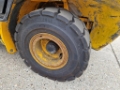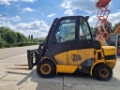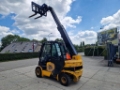 JCB TLT35D Teletruk, bouwjaar 2007, hefvermogen 3.5 ton, hefhoogte 4.35m, doorrijhoogte 2.20m, hydraulische vorkversteller, hydrostaat, met 4-cilinder Perkins motor, Trelleborg luchtbanden, technisch in goed werkende staat, ideaal om een vrachtwagen van één kant te laden of lossen, het eigen gewicht is 5200kg.
