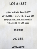 (36) New Army Tan Hot Weather Boots Size 8R