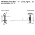 Batterie 165 Ah, Fensterheber elektrisch, Frontscheibe getönt, Getriebe - Schaltung mechanisch, Kraftstofftank: 180 Ltr. Kunststoff, Radiovorbereitung (12V), Rahmenüberhang - Verlängerung, Reserverad, Schalter Ladebordwand, Schnittstelle Flottenmanagement-System, Sitze im Fahrerhaus: Fahrersitz Schwingsitz Komfort, Stahlfelgen 7.50x19.5, Unterfahrschutz seitlich, Vorbereitung Truck Data Center (Flottenmanagement-System)