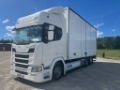 Superfin Scania R 540 6X2*4 Fjärrtransportskåp med öppningsbar sida, förberedd för bommar, som endast har gått 39.900 mil för omgående leverans.