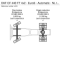 Achteras: Dubbellucht; Max. aslast: 11500 kg; Bandenprofiel linksbinnen: 60%; Bandenprofiel linksbuiten: 60%; Bandenprofiel rechtsbinnen: 60%; Bandenprofiel rechtsbuiten: 6%; Reductie: enkelvoudige reductie