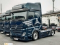 Getriebe 12-Gang Automatik, Vorderachse luftgefedert, Vorderachse 8,0 t, Elektronisches Bremssystem (EBS) mit ABS und ASR, Scheibenbremse an VA und HA, Feststellbremse, elektronisch, Sekundär-Öl-Retarder, Radstand 3.700 mm, Lenkung, Servotwin, Seitenverkleidung aerodynamisch, Fahrer-Schwingsitz, Komfort, Massage-Funktion, für Fahrersitz, Komfortbett oben, breit, nivellierbar, Komfortbett unten, Matratze unten, PremiumComfort, Rasierspiegel, Sonnenrollo elektrisch, 1-teilig, LED Ambientebeleuchtung, fahren und wohnen, StyleLine, Standklimaanlage, elektrisch, Klimaautomatik, Restwärmenutzung, Warmwasser-Zusatzheizung, Fahrerhaus, Wärmeisolierung Fahrerhaus zusätzlich, Schiebe/Hebedach elektrisch, Glasausführung, Schnittstelle, FlottenManagementSystem FMS, Anhängersteckdose 24 V, 15-polig, ExtraLine, Mercedes Stern, beleuchtet, GigaSpace Fahrerhaus, 2,50 m breit, ebener Boden, Fahrerhauslagerung Komfort, luftgefedert, Luftleitkörper, starr, mit Endkantenklappen, Sonnenblende außen, transparent, Drucklufthorn, MirrorCam, Schließanlage, mit Zentralverriegelung, Komfortschließanlage, Lichtsensor, Regensensor, Predictive Powertrain Control (PPC), Mercedes PowerShift 3, Heizung für Fahrersitz, Reifen 295/60 R 22,5 HA, Reifen 355/50 R 22,5 VA/VLA/NLA, Luftfederung, Hinterachse Lowliner, Sound-System, Navigationssystem, Achslast-Messeinrichtung, Tank 390 Liter, AdBlue-Tank 60 Liter, Tank 290 Liter, Automatisches Auf-/Abblend- und Abbiegelicht, Scheinwerfer-Reinigungsanlage, Motor OM 471, R6, 12,8 l, 375 kW (510 PS), 2500 Nm, Motorausführung Euro 6, E, High Performance Engine Brake, Safety Pack, Climate Package, Economy Package, Driving Package, Comfort Package, Sight Package, Actros Driver Extent, Sattelkupplung, mit Platte, Jost JSK 42MK, Alu-Felgen 9.00 X 22.5, Alu-Felgen 11.75 X 22.5, VA, Stabilitätsregel-Assistent (ESP), Spurhalte-Assistent, Abstandshalte-Assistent, Aufmerksamkeits-Assistent, Verkehrszeichen-Assistent, Active Brake Assist 5, Active Sideguard Assist, Reifendruckkontrolle, Active Drive Assist 2, Airbag, Fahrer, Tempomat, Actros Modellgeneration 5, Kühlschrank in Schublade unter Bett, EBS, Metallic-Lack, Ohne Ersatzrad